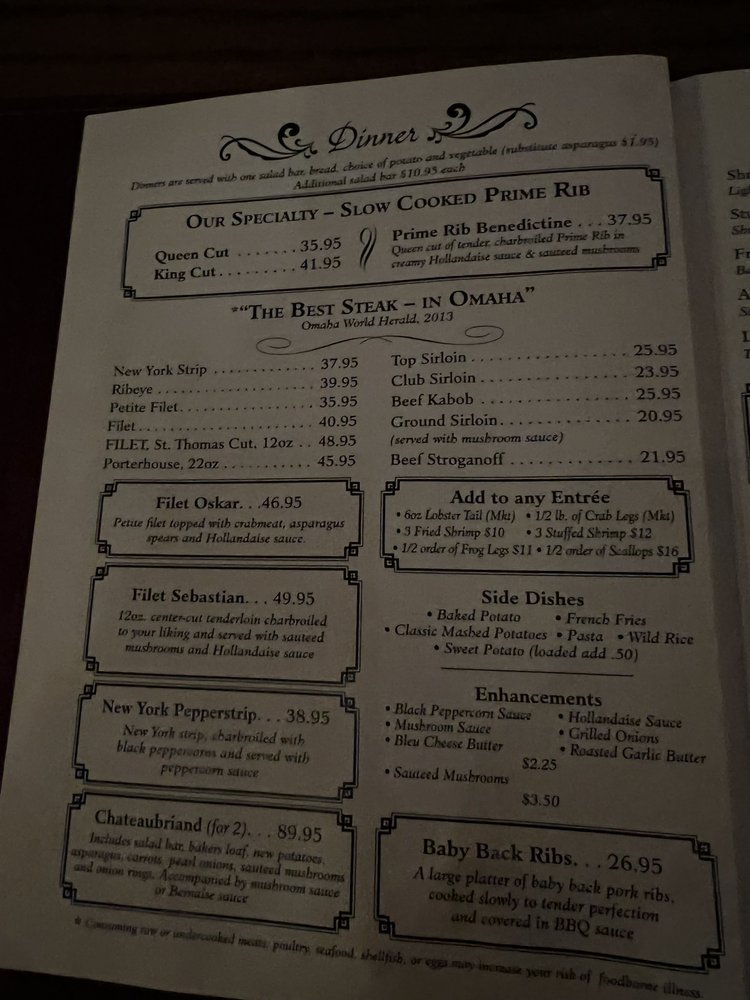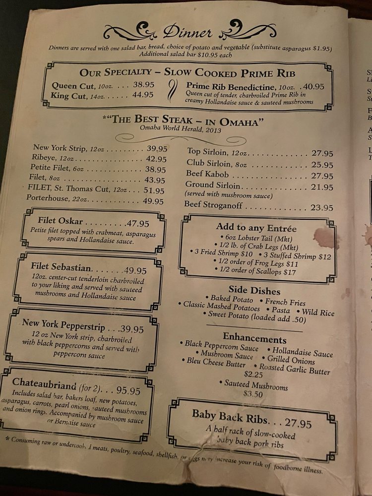 Brother Sebastian's Steak House & Winery in Omaha offers a unique dining experience with a monk-themed ambiance that sets the mood before you even enter. The menu boasts slow-cooked prime rib and top-quality steaks, including the highly recommended New York Strip and Ribeye. Customers rave about the exceptional service, affordable prices, and generous portions. The restaurant's decor mimics a monastery, creating a warm and inviting atmosphere. The salad bar features fresh ingredients, and the bread made in-house is a standout. Desserts like the cooked cherry in wine over vanilla ice cream and the raspberry bread pudding are must-try indulgences. Whether for a special occasion or a casual meal, Brother Sebastian's provides delicious food, warm hospitality, and an unforgettable dining experience.